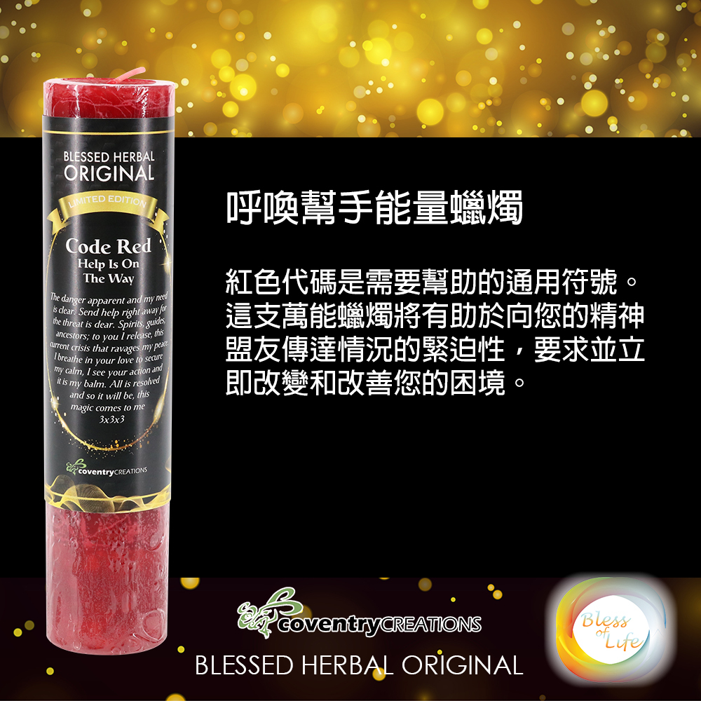 紅色代碼是需要幫助的通用符號。這支萬能蠟燭將有助於向您的精神盟友傳達情況的緊迫性,要求並立即改變和改善您的困境。