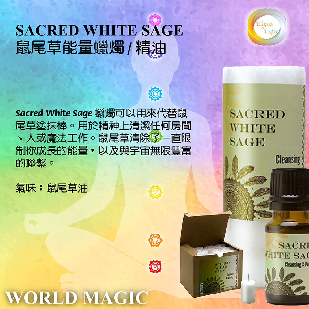Sacred White Sage 蠟燭可以用來代替鼠尾草塗抹棒。用於精神上清潔任何房間、人或魔法工作。鼠尾草清除了一直限制你成長的能量,以及與宇宙無限豐富的聯繫。