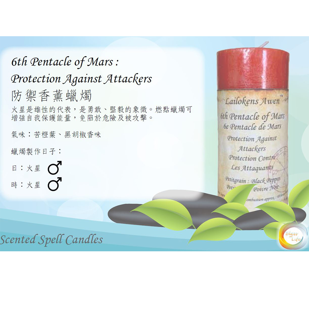 火星是雄性的代表,是勇敢、堅毅的象徵。燃點蠟燭可增強自我保護能量,免陷於危險及被攻擊。
