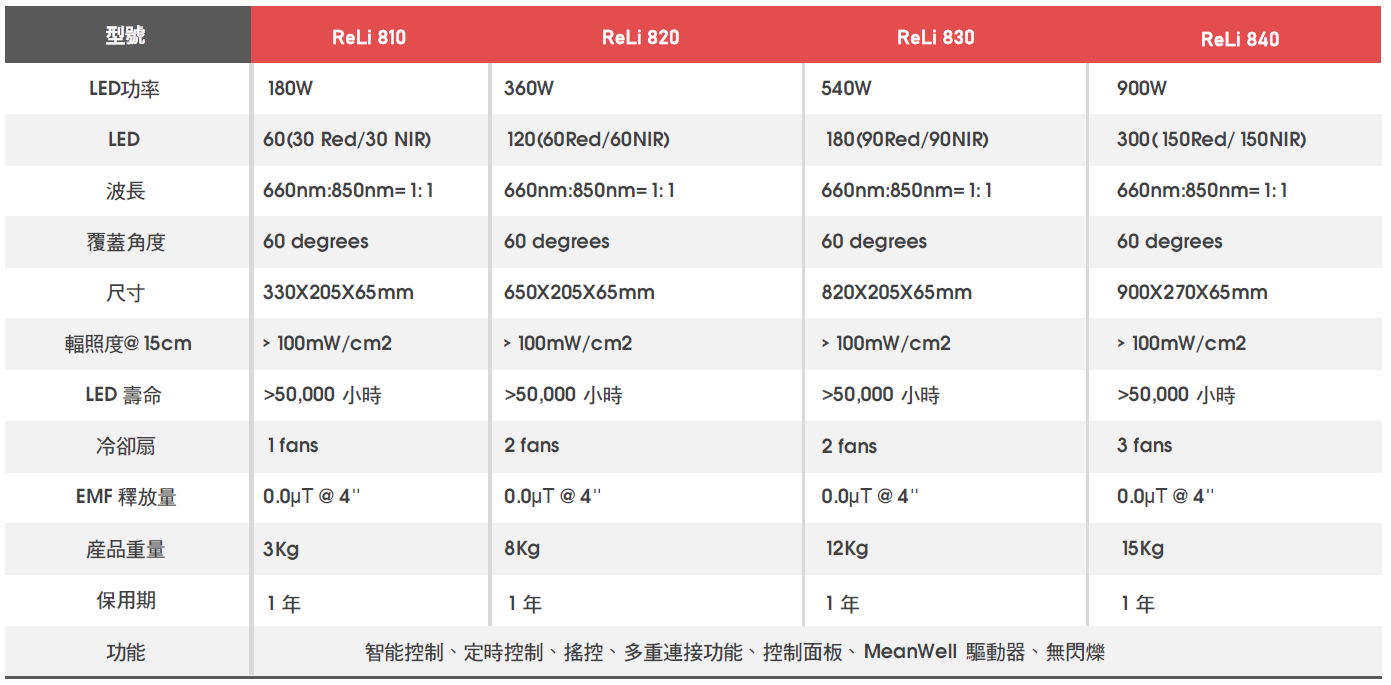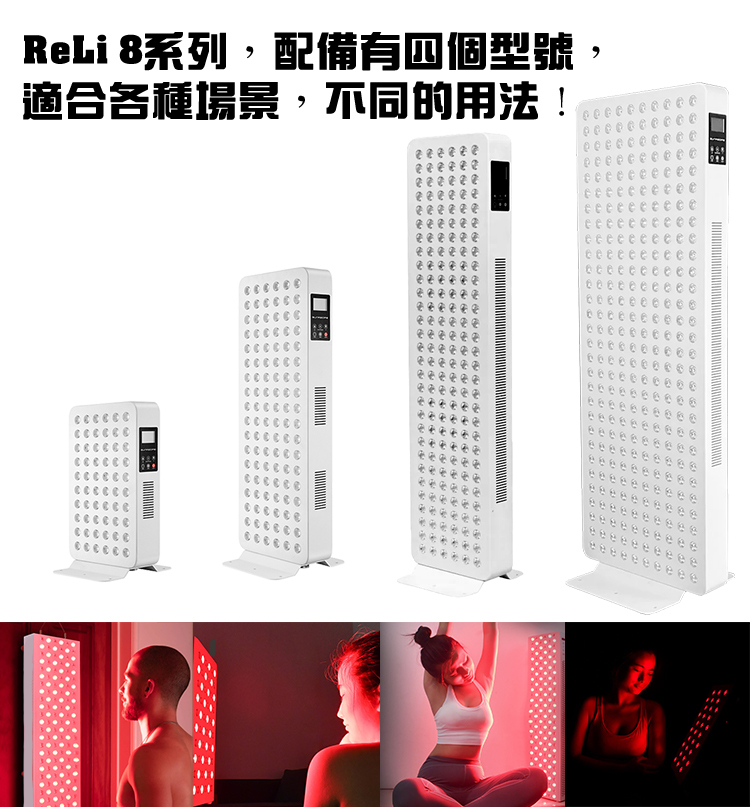 ReLi 8 系列 紅光‧近紅外線理療器是我們產品線中最新型的 LED 紅光理療器,配備了新型穩定3W 芯片光源,無頻閃LED,更內置智能控制,光度控制和搖遠控制功能,為您提供最佳的紅光理療體驗。