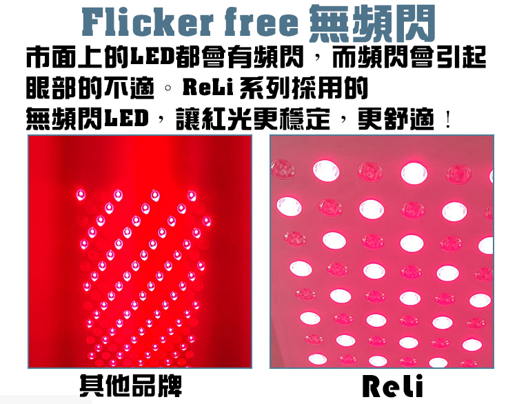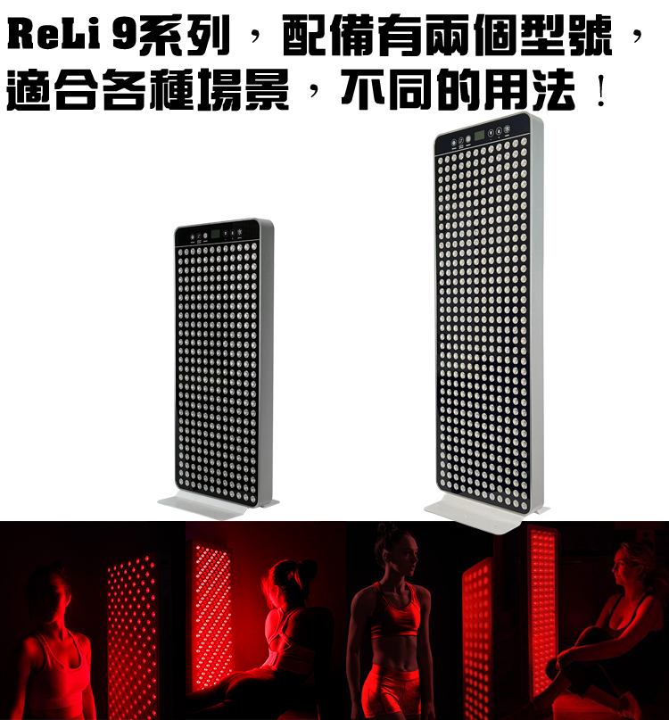 ReLi 9 系列 紅光‧近紅外線理療器是我們產品線中最新型的 LED 紅光理療器,配備了新型穩定3W 芯片光源,無頻閃LED,更內置智能控制,光度控制和搖遠控制功能,為您提供最佳的紅光理療體驗。