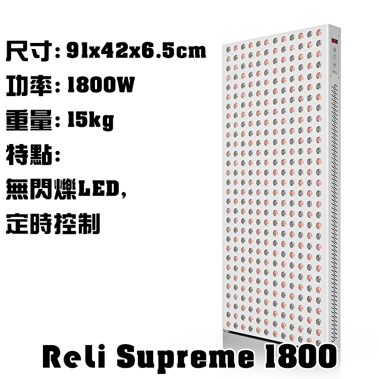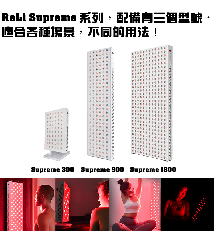 ReLi Supreme 紅光‧近紅外線理療器是我們產品線中最先進的 LED 紅光理療器,配備了 5W 雙芯片光源,無頻閃LED, 更內置智能控制、定時控制、Mean Well 驅動器和多重連接功能,為您提供最佳的紅光理療體驗。