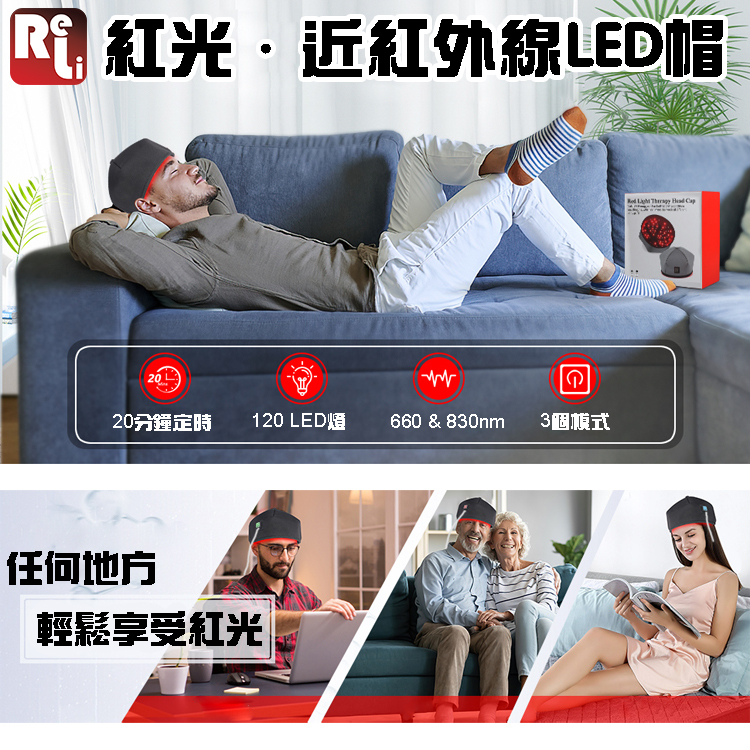ReLi 220 紅光‧近紅外線LED帽是一款可以讓你隨時隨地輕鬆地體駭紅光的產品,配備了 紅光和近紅外線兩種波長的LED, 更內置智能控制、定時控制,為您提供最佳的紅光理療體驗。