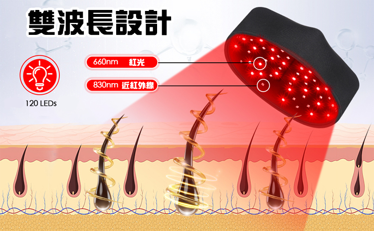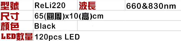 ReLi 220 紅光‧近紅外線LED帽功能強大,可提供 660nm 和 830nm 兩種不同波長,這些都是自然陽光中的波長,在許多研究中已經證明對人體有很好的益處。