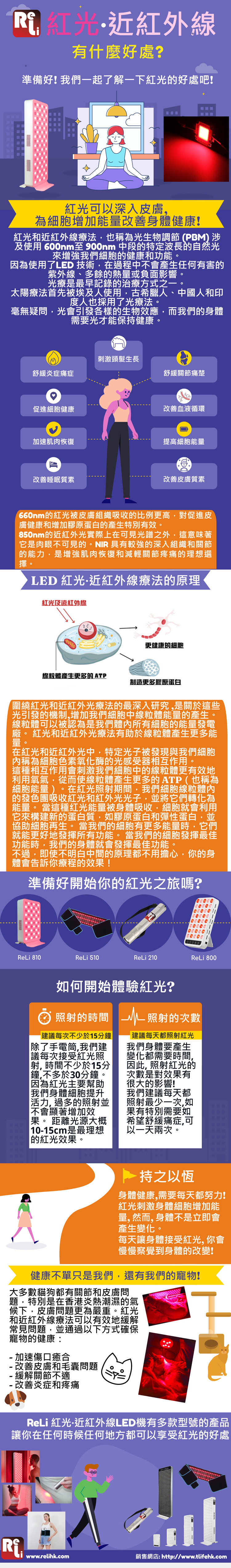 ReLi 530 紅光‧近紅外線LED墊是一款可以讓你隨時隨地輕鬆地體駭紅光的產品,配備了 紅光和近紅外線兩種波長的LED, 更內置智能控制、定時控制,為您提供最佳的紅光理療體驗。