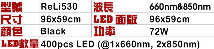 ReLi 530 功能強大,可提供 660nm 和 850nm 兩種不同波長,這些都是自然陽光中的波長,在許多研究中已經證明對人體有很好的益處。