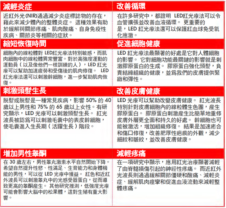 850nm的近紅外光實際上在可見光譜之外,這意味著它是肉眼不可見的。 NIR 具有較強的深入組織和關節的能力,是增強肌肉恢復和減輕關節疼痛的理想選擇。